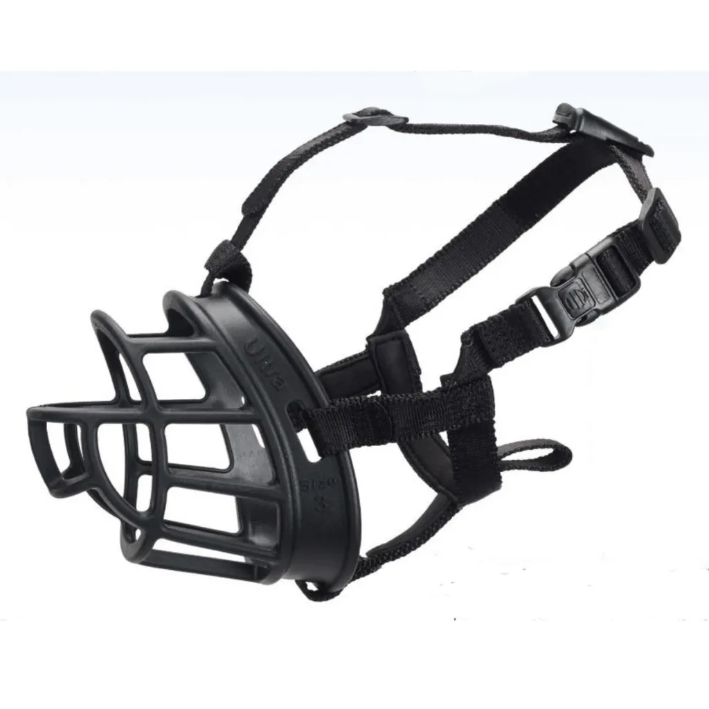 El Ultra Muzzle tiene un diseño en forma de cesta más flexible, especial para perros con hocicos anchos, y también permite que nuestros peludos puedan jadear y beber mientras lo llevan puesto.