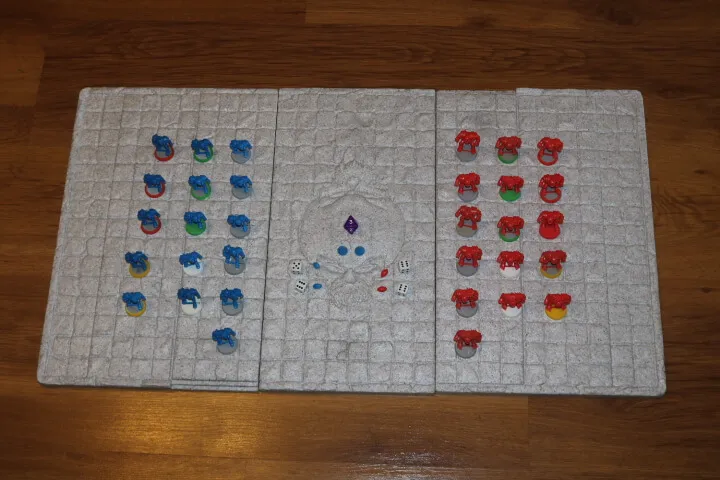 Blood Bowl is a game of Fantasy Football. The basic game features a match between a human team and an orc team. Ostensibly the teams are playing football. In fact each team takes turns moving, blocking and advancing the football down the field. The game comes with plastic miniatures.