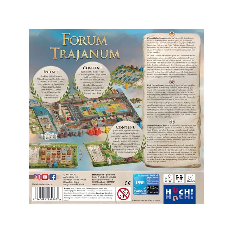 Forum Trajanum is a board game for 2-4 players, 60-120 min, 12+ years. English, deutsch and francais, brand new.