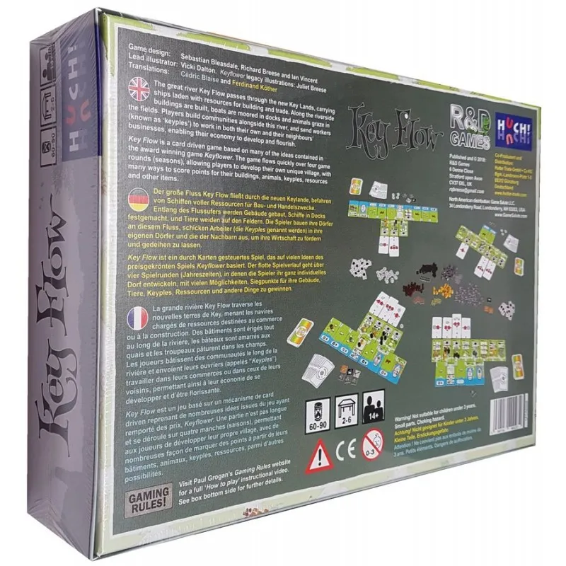 Key Flow is a card-driven game based on many of the ideas contained in the award-winning game Keyflower. The game flows quickly over four game rounds (seasons), allowing players to develop their own unique village, with many ways to score points for their buildings, animals, keyples, resources and other items.