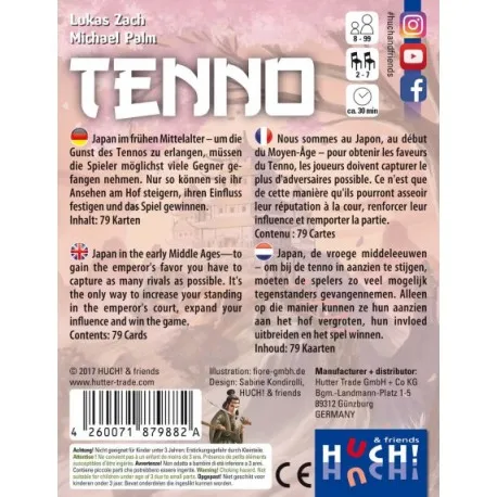 Tenno is a board game for 2-7 players, 30 min, 8+ years. English-german-french-dutch, brand new.