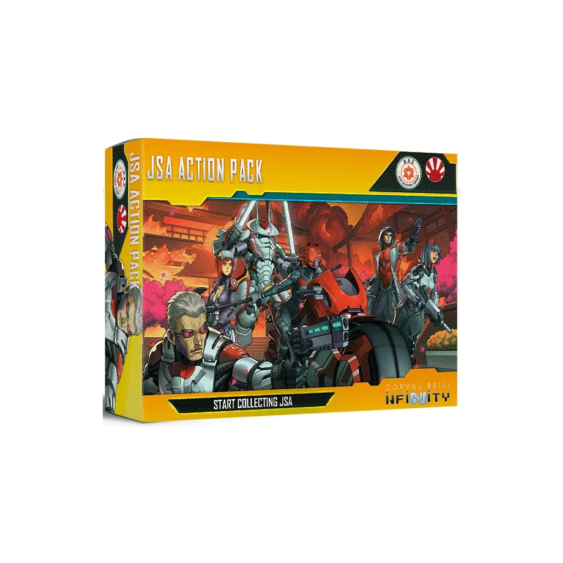 JSA Action Pack is a miniature expansion pack for Infinity: CodeOne board game, for 2 players, 60 min lenght, 14+ y.o. English-spanish, brand new.