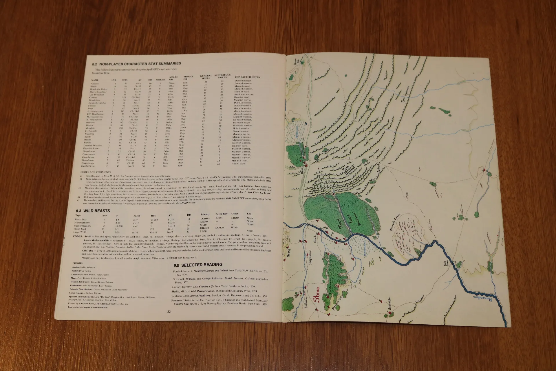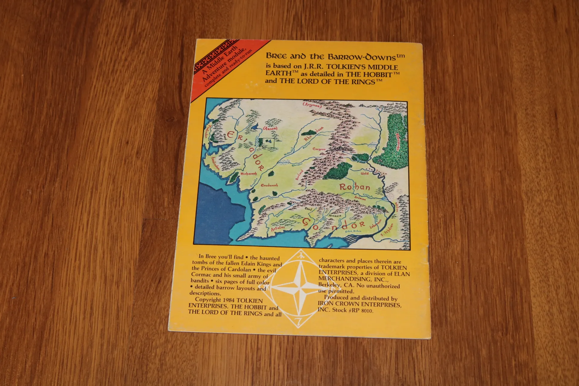 Description: Here at the crossroads of the Northern Dunedain Kingdom is located the oldest surviving settlement of Hobbits, the village of Bree. Not far away lie the eerie barrow-tombs of the cursed Kings of Cardolan. This adventure module contains: NPC charts, color layouts of Bree-lands, Silent-Head and the villages of Bree, Archet, Staddle and Combe; more than 20 barrows including the mounds of the ancient Edain Kings.