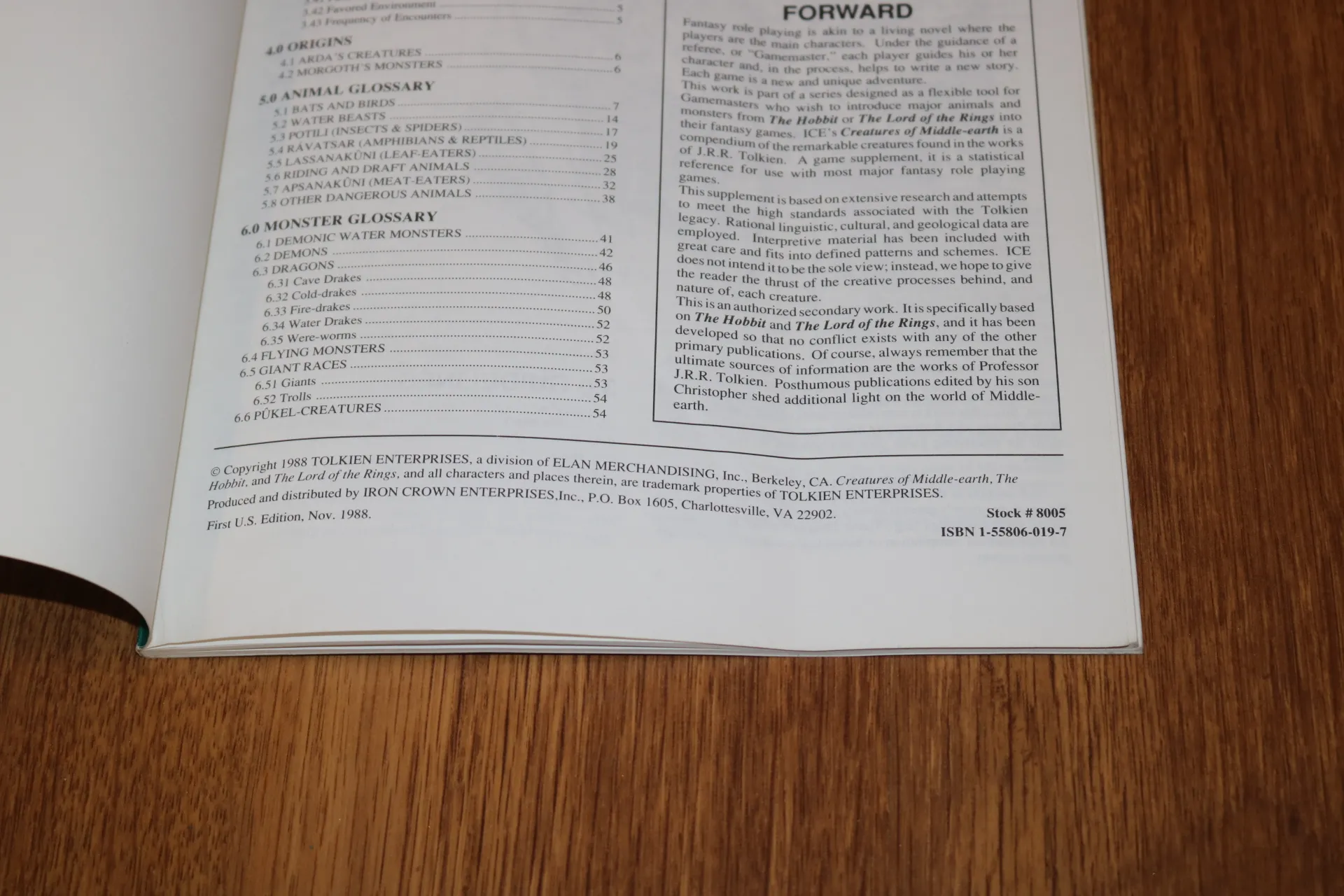 Description: This Volume describes the animals and monsters in Tolkien´s world. Each species has a general history and a character glossary that alphabetically lists major individuals. These beings are described in terms of appearance, motivation, characteristics and background. Game statistics for the MERP and Rolemaster game systems are also included. These stats can be easily converted to most FRP systems.