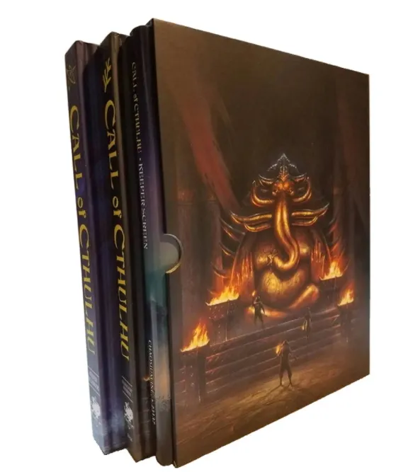 - Keeper Rulebook (Hardcover): containing the core rules, background, guidance, spells, and monsters of the game. It is intended for use by the Keeper of Arcane Lore (the Keeper) — that player who will present the adventure to the other players. You must have at least one copy of this book to play Call of Cthulhu. The other players, the Investigators, should have one or more copies of the Investigator Handbook, containing expanded rules for character creation, skills, occupations, equipment, and more. Get more details here.
