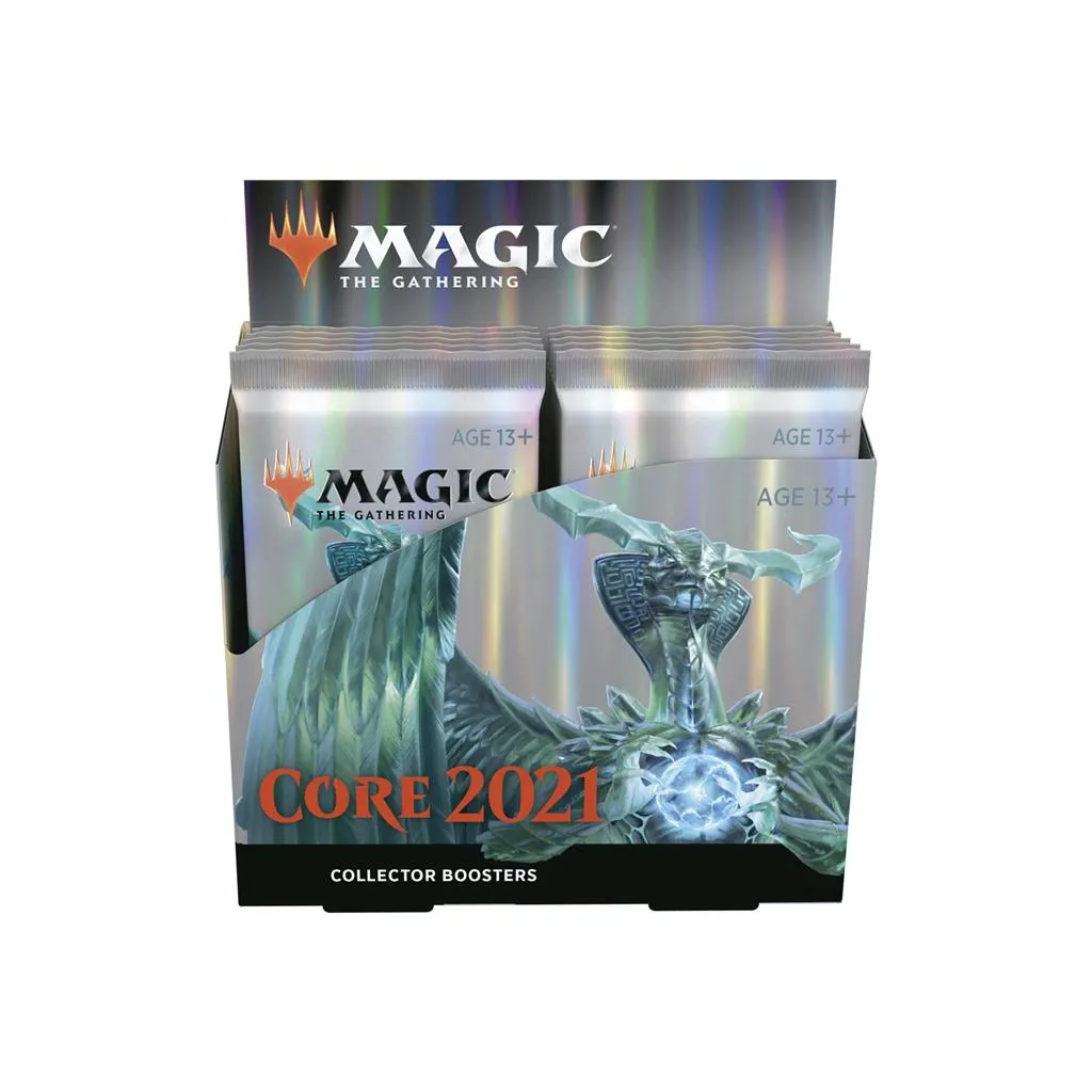 Core Set 2021 Collector Packs come in boxes of 12 boosters with 15 of the Most Wanted cards in each.