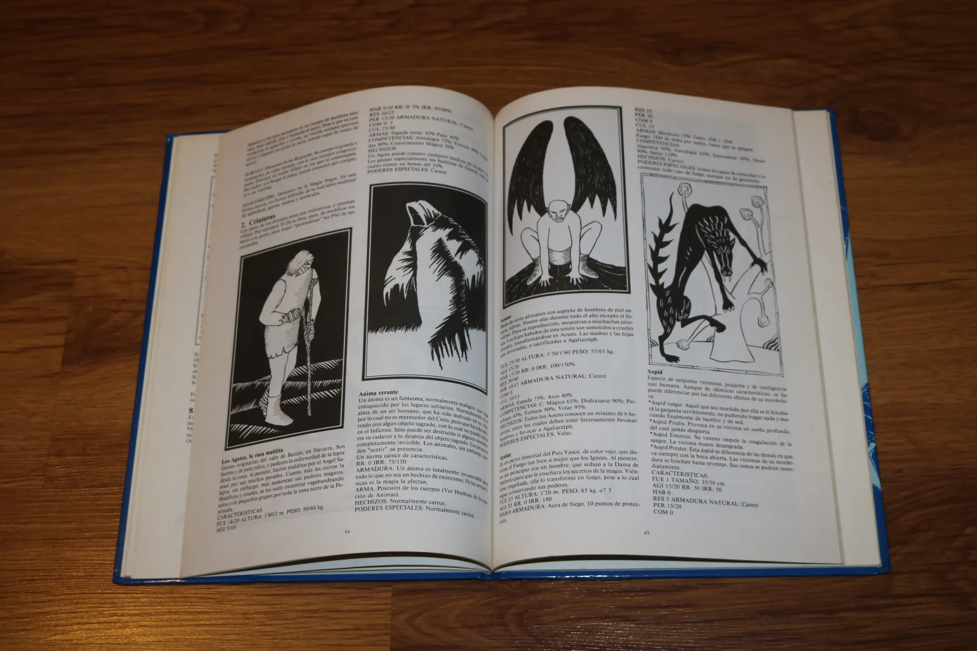 Descripción: Aquelarre. Juego de Rol demoníaco medieval. El lugar, la península ibérica. La época, segunda mitad del siglo XIV. Se reparten el territorio 5 reinos: Castilla, Aragón, Granada, Navarra y Portugal. Castilla y Aragón están en guerra; en ella se decide qué reino tendrá la supremacía definitiva sobre la península. Es la Baja Edad Media. Señores y vasallos. Pero no todo es como nosh an dicho que fue. Coexistiendo con el hombre existe otro mundo, mucho más antiguo y sabio. Un mundo que se oculta en los bosques y zonas agrestes, pero que también es capaz de invadir, de noche y a escondidas, las nuevas ciudades de los hombres: es el mundo de la fantasía, la leyenda, la magia y la locura. De las criaturas no humanas y del DIABLO.