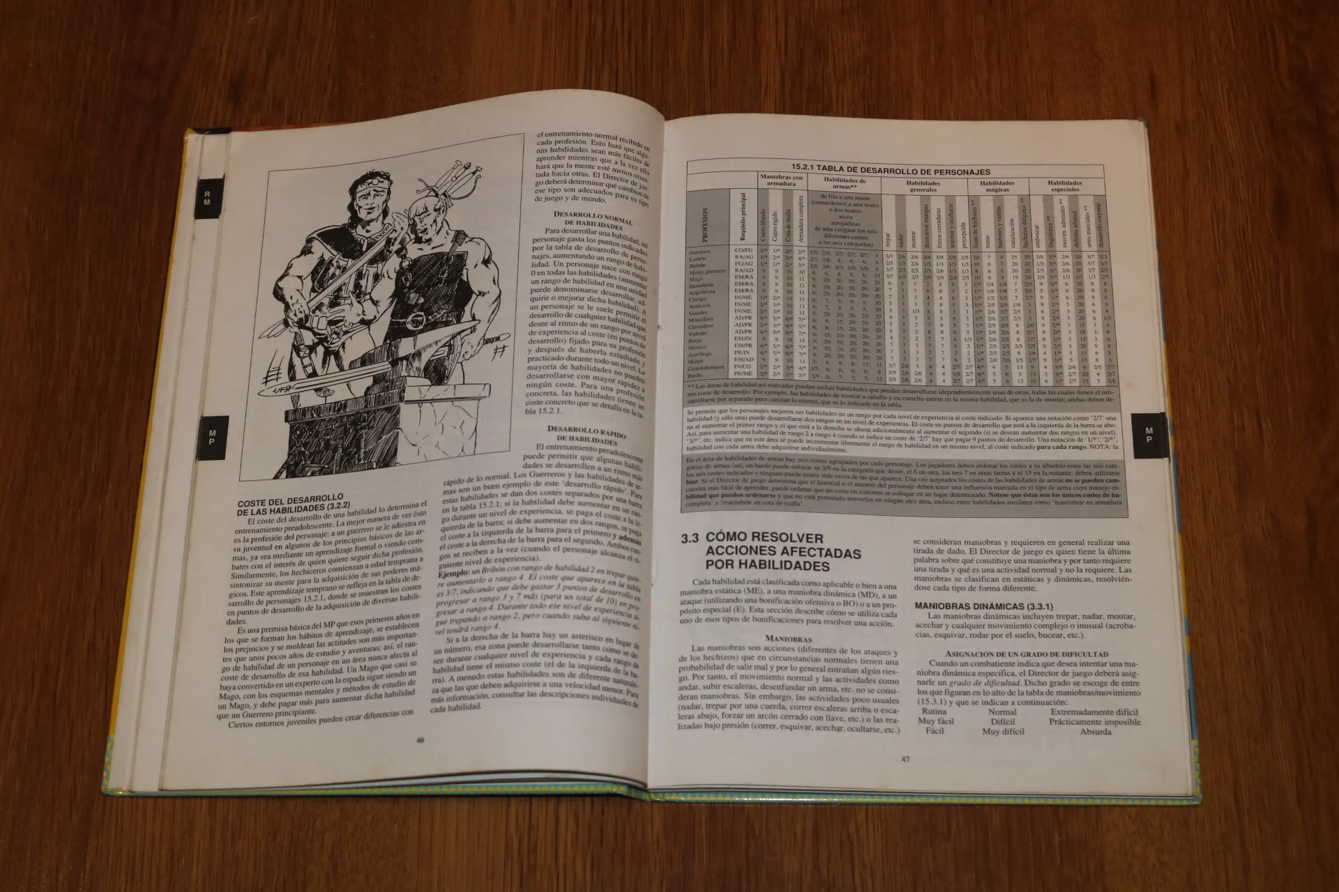 En la parte de creación de personajes, se encuentran las tablas necesarias para la creación de este, además de una gran explicación de todas las profesiones, razas, habilidades primarias y secundarias, la magia de tu personaje, el peso que puede llevar, e incluso como meterte en la piel de tu propio personaje. Por lo demás esta parte es de lo mas común a cualquier libro de rol, con razas parecidas, profesiones comunes y demás cosas.
