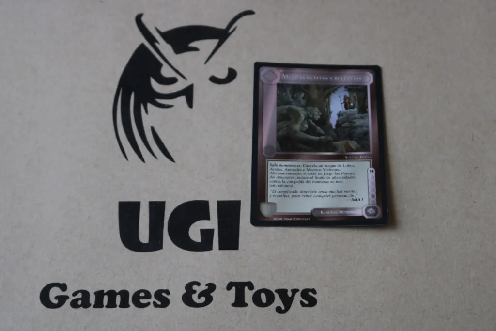 El nombre original del juego es MECCG (Middle Earth Collectible Card Game) creado por Iron Crow Enterprises en 1995.