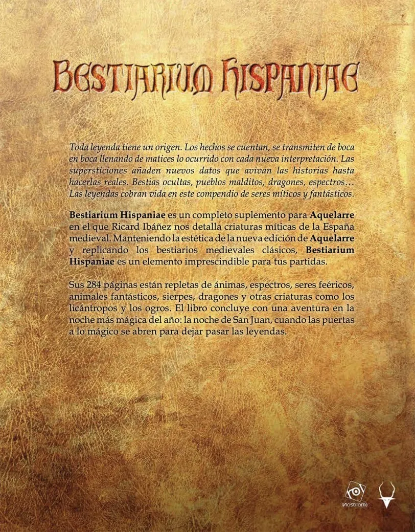 Bestiarium Hispaniae es un completo suplemento para Aquelarre en el que Ricard Ibáñez nos detalla criaturas míticas de la España medieval. Manteniendo la estética de la nueva edición de Aquelarre y replicando los bestiarios medievales clásicos, Bestiarium Hispaniae es un elemento imprescindible para tus partidas. En su páginas podrás encontrar:
