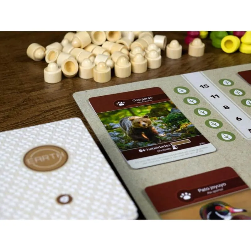 Earth es un juego de mundo abierto de 1 a 5 jugadores centrado en la creación de motores de producción, con reglas sencillas pero numerosas posibilidades estratégicas.