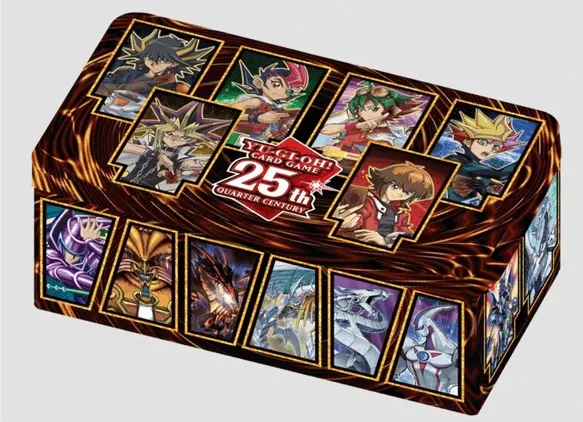 Celebra nuestro 25 aniversario con esta nueva Lata que incluye no una, sino dos cartas raras secretas Prismáticas y una versión Rara Secreta del Cuarto de Siglo de una de las dieciséis que hay. Cada lata contiene 3 Mega-sobres, cada uno con: 2 Secreta Rara Prismática, 2 ultra raros, 1 super raros, 1 raro y 12 comunes. + 1 rara Secreta de Cuarto de siglo.