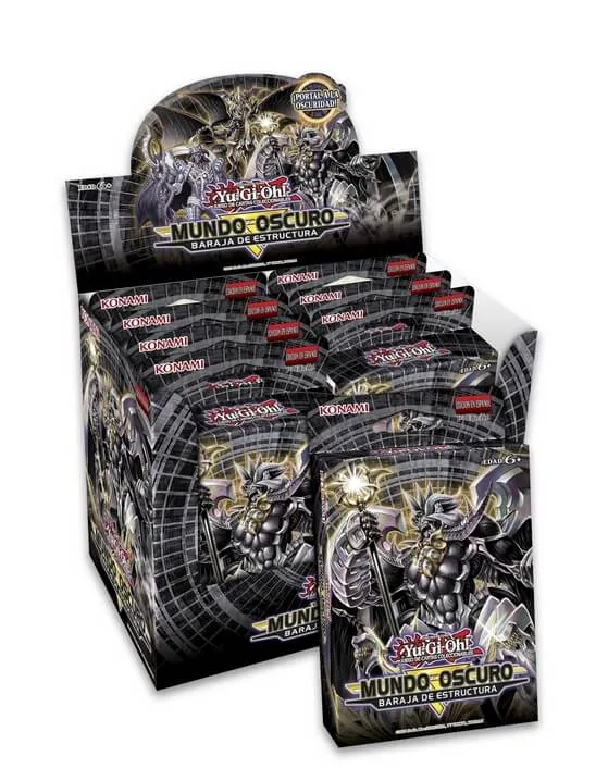 Mundo Oscuro (Caja de Barajas de Estructura), expansión del juego de duelos Yu Gi Oh! publicado por Konami. A partir de 6 años.