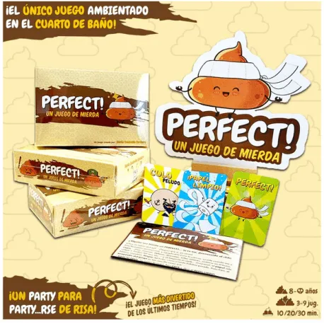 Perfect! Un juego de mierda es un juego de mesa para 3-9 jugadores, 10-30 min duración, 8+ años. En español, nuevo a estrenar.