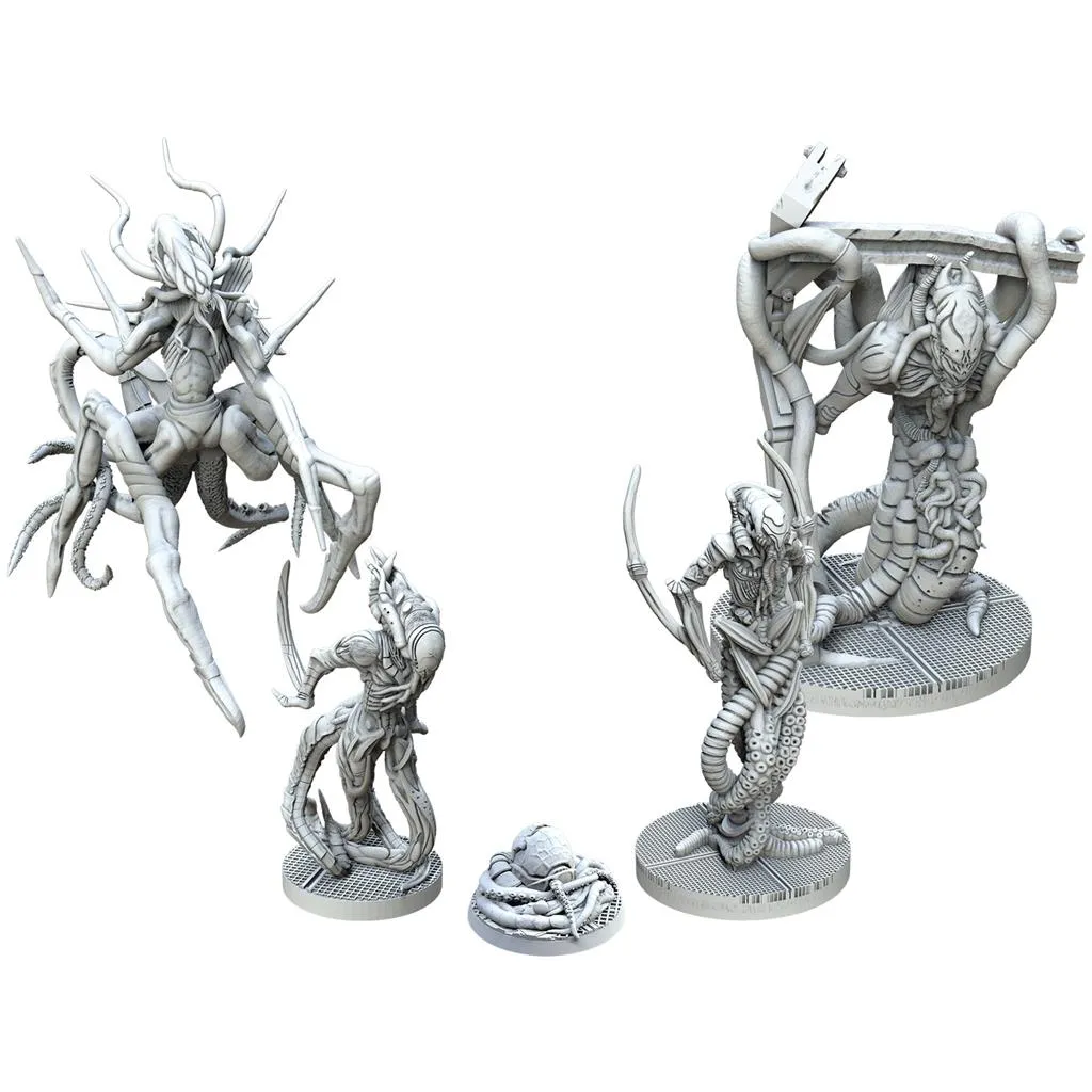 La expansión Sembradores del Vacío incluye todo lo necesario para añadir al juego una nueva raza de Intruso: miniaturas, fichas y cartas de Evento específicas. Además, aporta una nueva regla de juego: la Locura de los personajes.