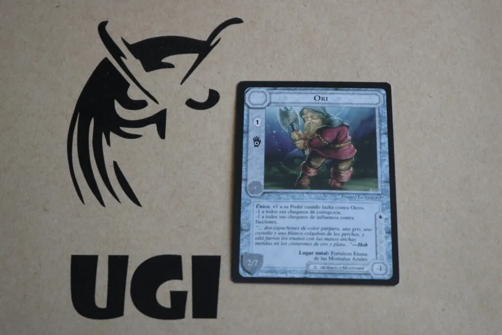 El nombre original del juego es MECCG (Middle Earth Collectible Card Game) creado por Iron Crow Enterprises en 1995.