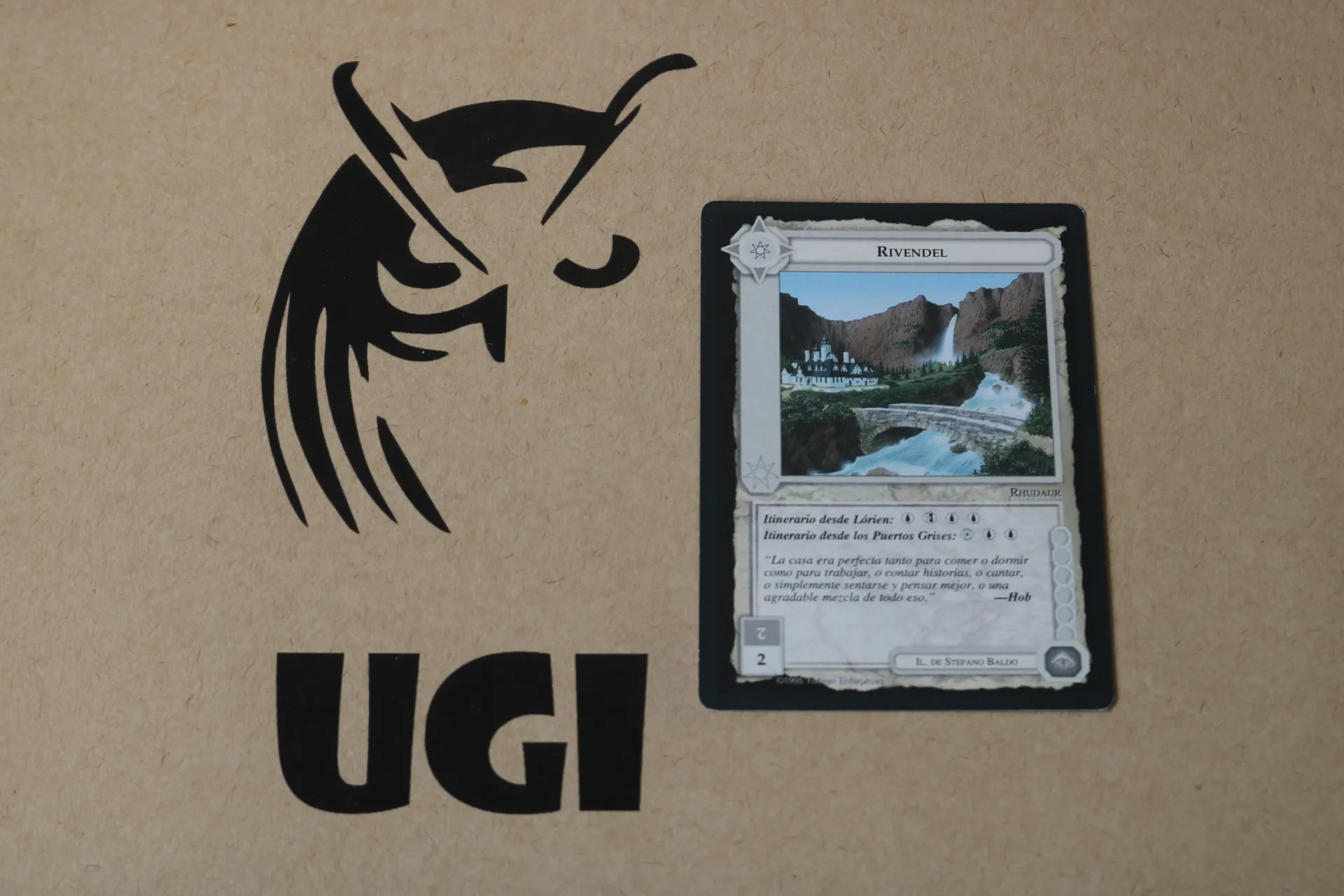 El nombre original del juego es MECCG (Middle Earth Collectible Card Game) creado por Iron Crow Enterprises en 1995.