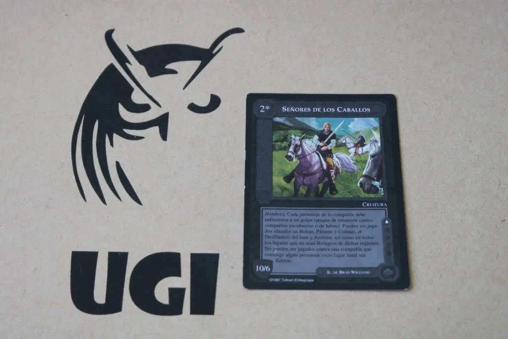 El nombre original del juego es MECCG (Middle Earth Collectible Card Game) creado por Iron Crow Enterprises en 1995.