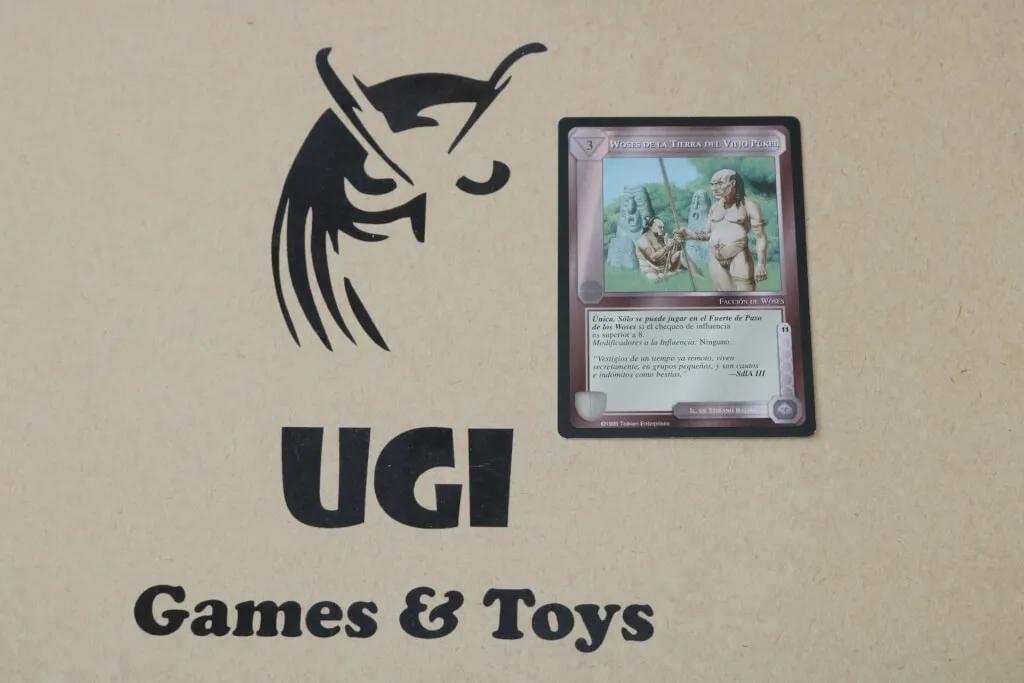 El nombre original del juego es MECCG (Middle Earth Collectible Card Game) creado por Iron Crow Enterprises en 1995.
