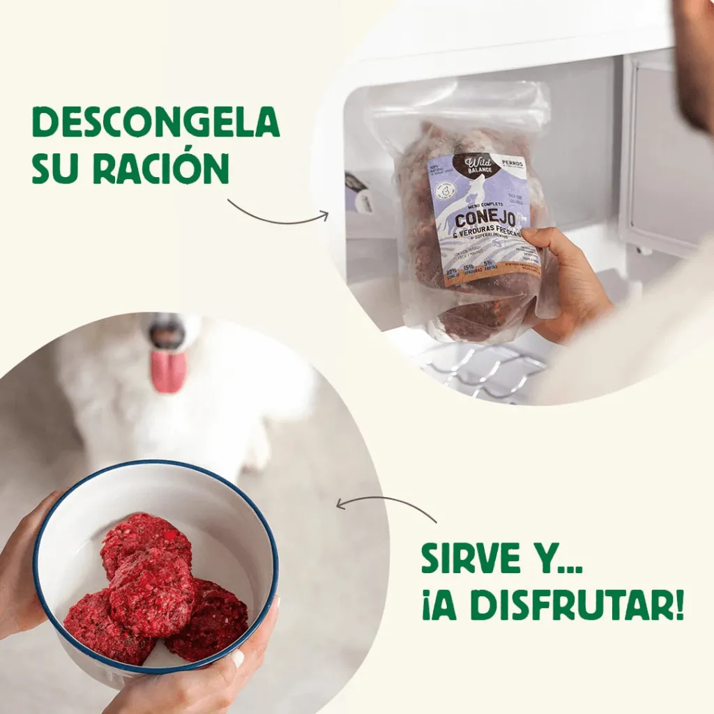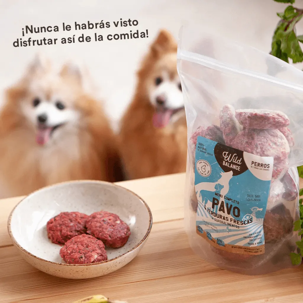 Cualquiera de sus menús BARF son totalmente completos. ¡Y deliciosos! Algunos menús son monoproteicos, ya que llevan solo una carne, y otros están elaborados de carne y pescado. Sea como sea, su proporción de carne, frutas y verduras hará que cualquier Menú BARF de Wild Balance sea 100% completo para tu perro.