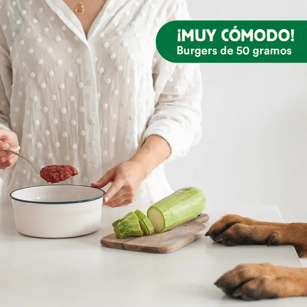 Los Menús BARF de Wild Balance no son solo para ellos, también están pensados para ti. Con Su cómodo formato de hamburguesas de 50g te será muchísimo más fácil alimentar a tu perro con comida natural. Es muy sencillo de racionar la comida en el caso de perros pequeños o incluso de perros grandes, ya que no tendremos que estar dividiendo grandes cantidades, simplemente cogeremos el número de hamburguesas que tenga que comer. ¿Ves qué fácil?