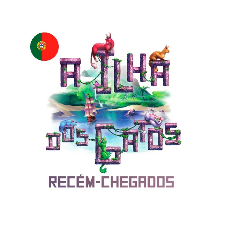 Recém-Chegados, expansión del juego de mesa A Ilha dos Gatos para 1-4 jugadores, 60-90 min duración, 8+ años. En portugués, nuevo a estrenar.